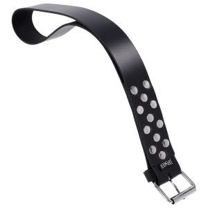 cow-hide leather belt-style impact tool with silver hardware detailingFolded strap design delivers sharp, satisfying stinging impactSilver buckle enhances the realism and anticipation of traditional belt