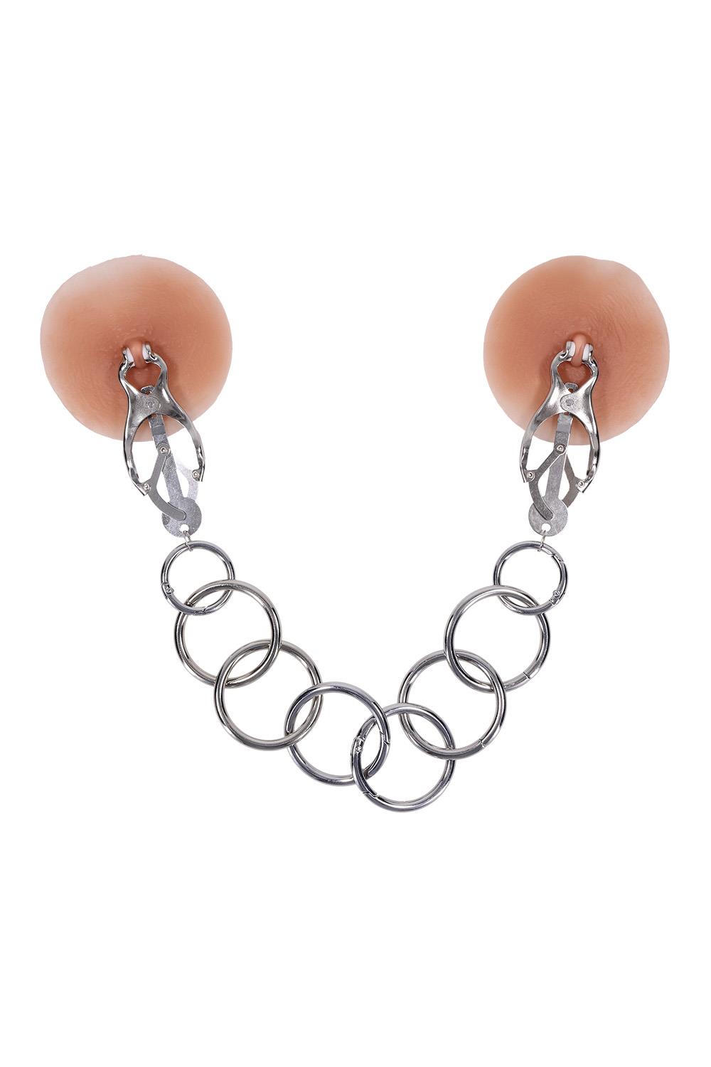 bondage play. Finished in polished silver metal with textured silicone-tipped