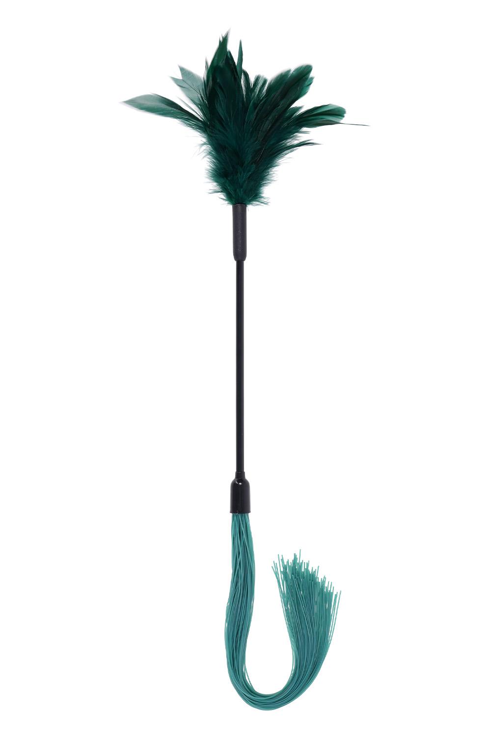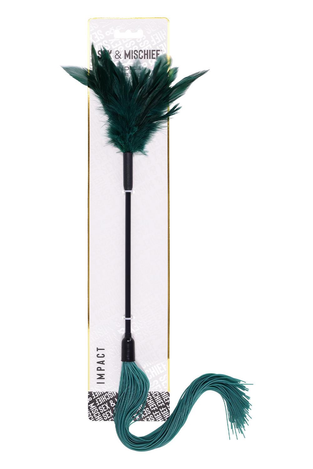 Explore the art of contrast. The Indica Feather Tickler is a dual-ended tool that teases and tantalizes with every stroke. One side features soft green feathers for delicate sensory play, while the other delivers a light sting with flexible silicone falls. Use it to awaken nerve endings, set the mood, or surprise your partner with an unexpected switch in sensation. It’s a two-in-one treat designed for touch you won’t forget.Dual-ended: soft feathers on one side, silicone strands on the otherIdeal for teasing, warming up, and heightening sensationCompact, beginner-friendly, and easy to integrate into any sceneMaterials: 40% Chicken Feathers, 40% Silicone, 20% PVCPackaging details: Hang CardAbout IndicaEmerald + Gold Aesthetic: Lush faux leather, shimmering hardware, delicate feathers, and crystal detailsInclusive & Accessible: All-gender, beginner-friendly, approachable BDSM designs