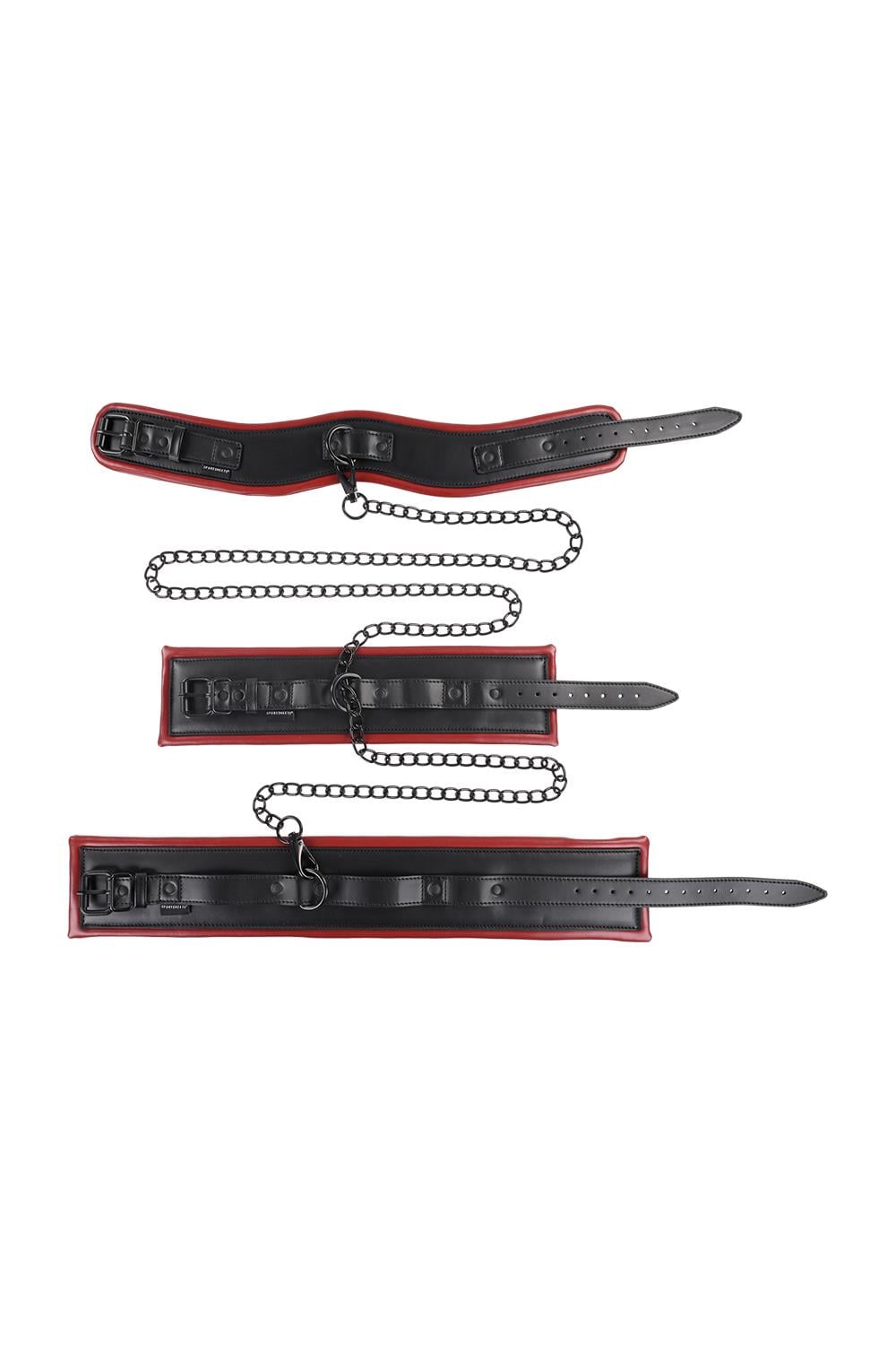 Następnie dodaj podwójny mankiet na nadgarstek, aby połączyć ręce i podwójny mankiet na kostkę, aby utrzymać je na miejscu. Następnie połącz mankiety i kołnierze tak, jak uważasz za stosowne i wyraź swoją władzę nad nimi.
