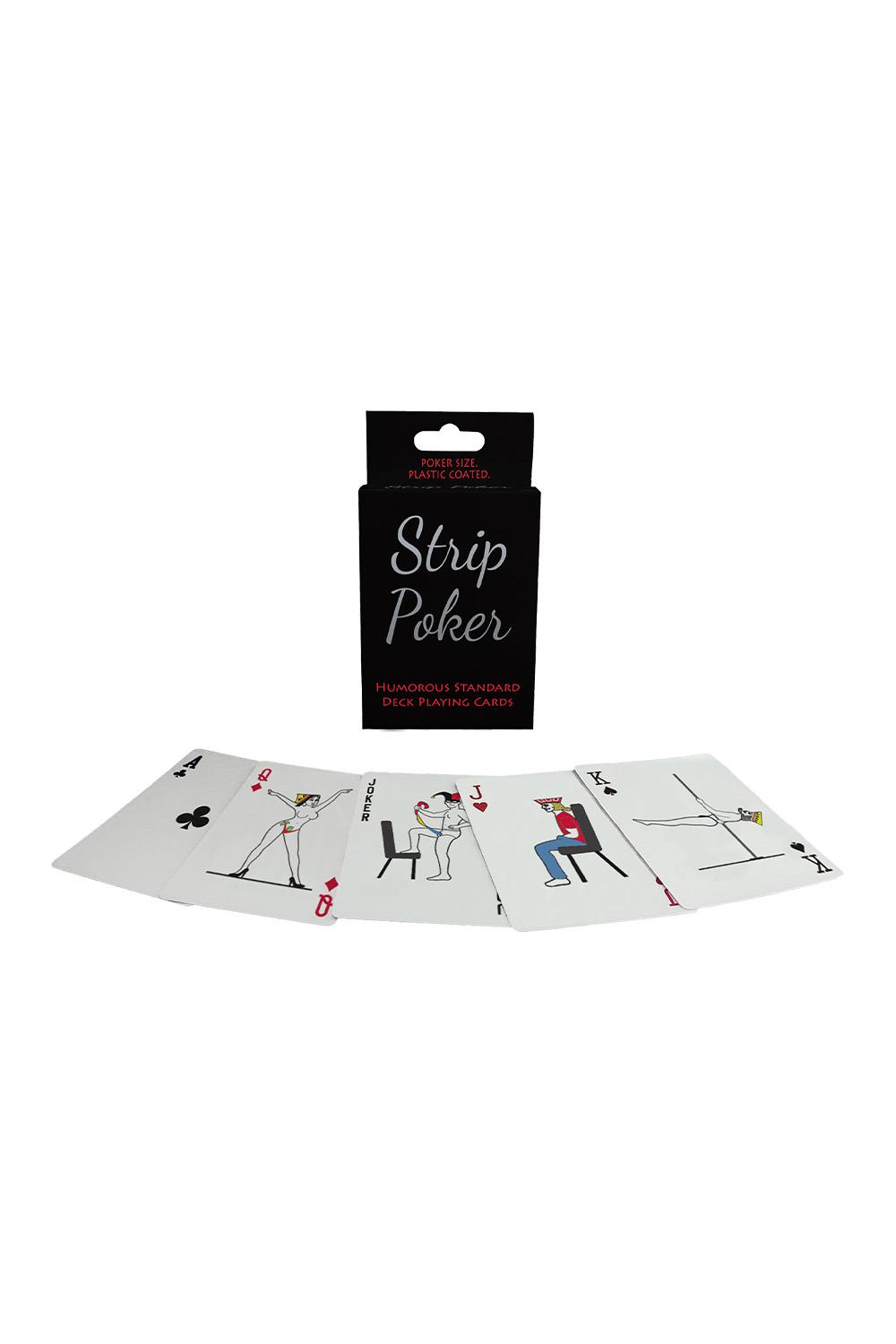 A humorous set of stripper-themed poker cards. Great for playing strip poker, and other adult card games. Jokers are playful strippers, the Kings are male strippers, Queens are female strippers, and Jacks are patrons touching themselves.Strip Poker is a campy, fun set of playing cards to be used for poker games. The jokers are playful strippers, with a male stripper pulling handkerchiefs out of the front hole of his boxers, and the female joker is squirting a patron with a flower squirting toy. The kings are male strippers with normal king faces, and similarly the queens are female strippers. Jacks are patrons enjoying themselves a little too much.“The request for a strip poker game came out of our X-BIZ Cabo meetings,” explains CEO BrianPellham. “We thought it would be a fun and hilarious way to take the old-style poker face cardsand joker, and make them naughtier.”Strip Poker contains a standard poker deck with custom artwork. Any game you would playwith a regular poker deck, could also be played with this deck.