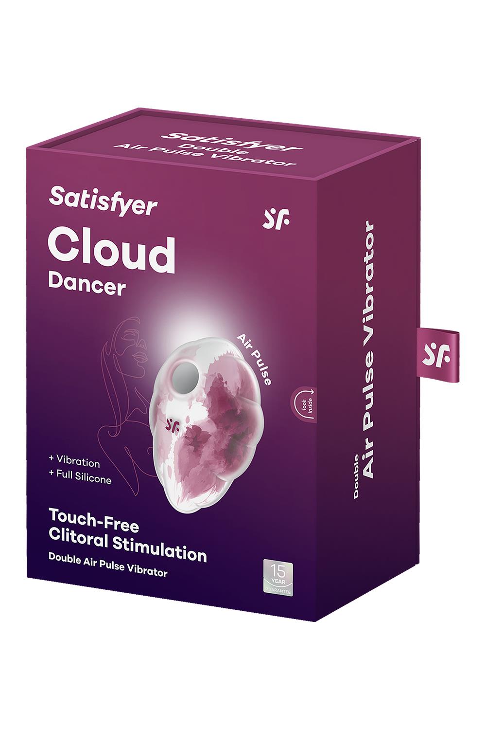 Il succhia clitoride Satisfyer Cloud Dancer è un sogno diventato realtà. Ha un esclusivo design a nuvola trasparente ed è dotato della tecnologia Air Pulse e di vibrazioni intense: stimola quindi il clitoride senza contatto diretto. Ha dimensioni compatte, è silenzioso e dotato di 11 intensità di pulsazione e 12 programmi di vibrazione. Ricaricabile tramite cavo USB, realizzato con materiali di qualità e waterproof.
