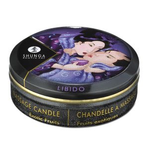 Świeca do masażu Egzotyczne owoce. Ta świeca na bazie soi może być używana zarówno jako świeca tworząca nastrój, jak i olejek do masażu intymnego.