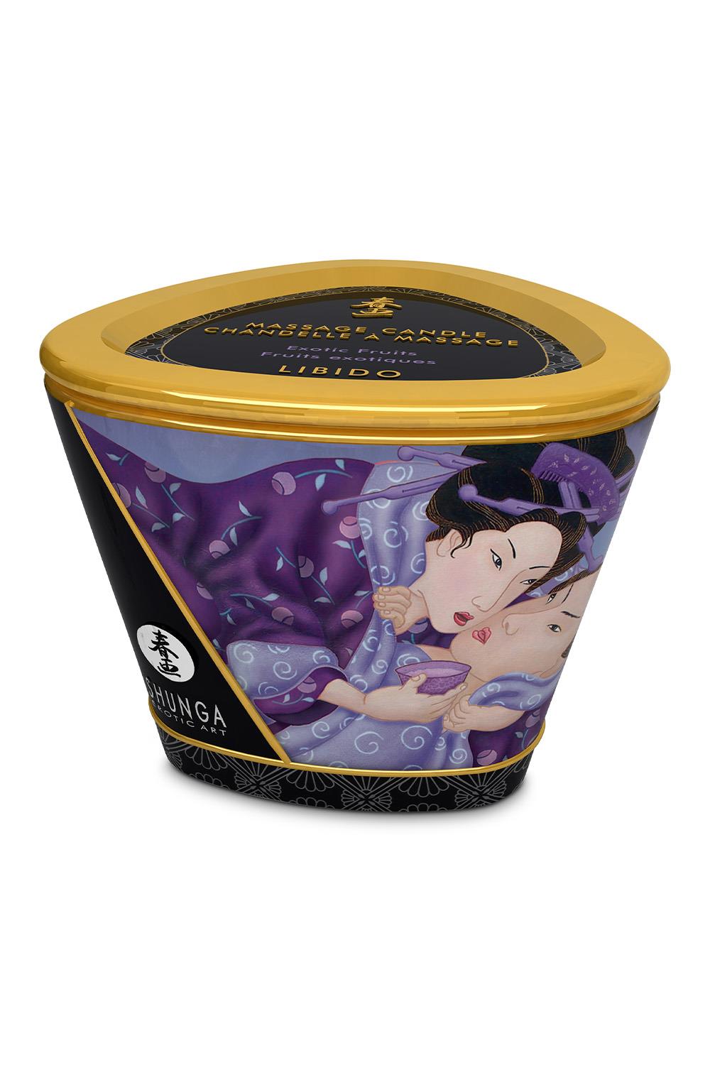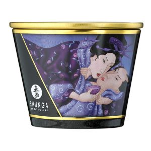 Świeca do masażu Owoce egzotyczne. Świeca na bazie soi może być używana zarówno jako świeca tworząca nastrój, jak i olejek do masażu intymnego