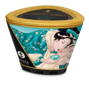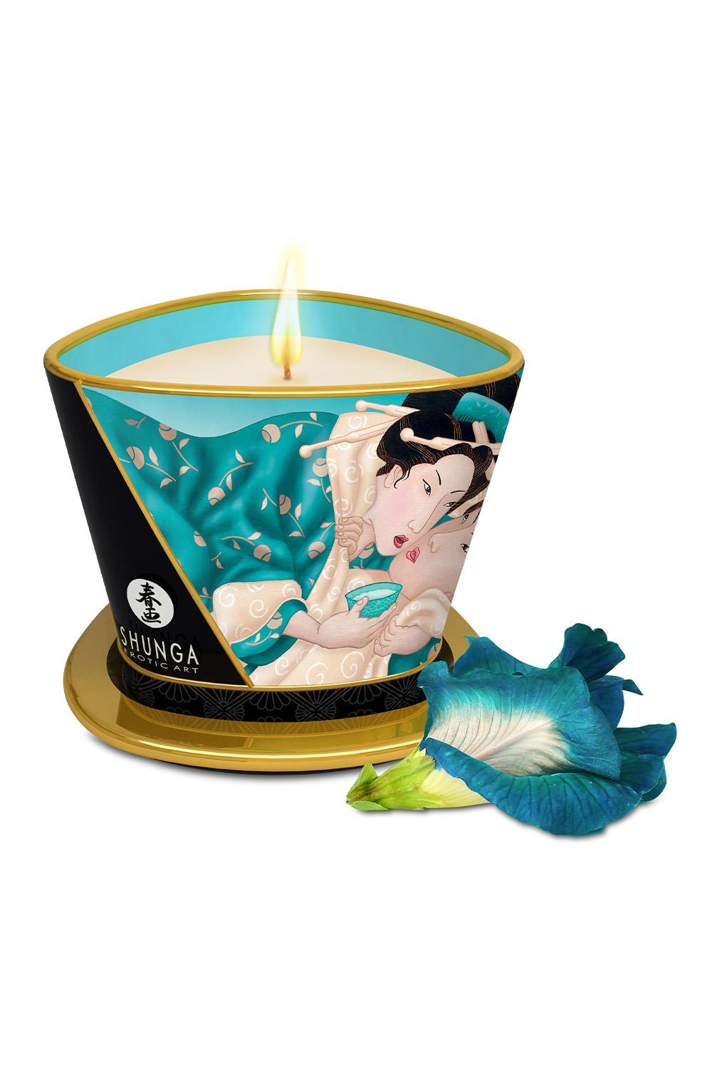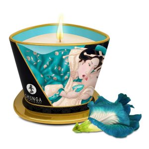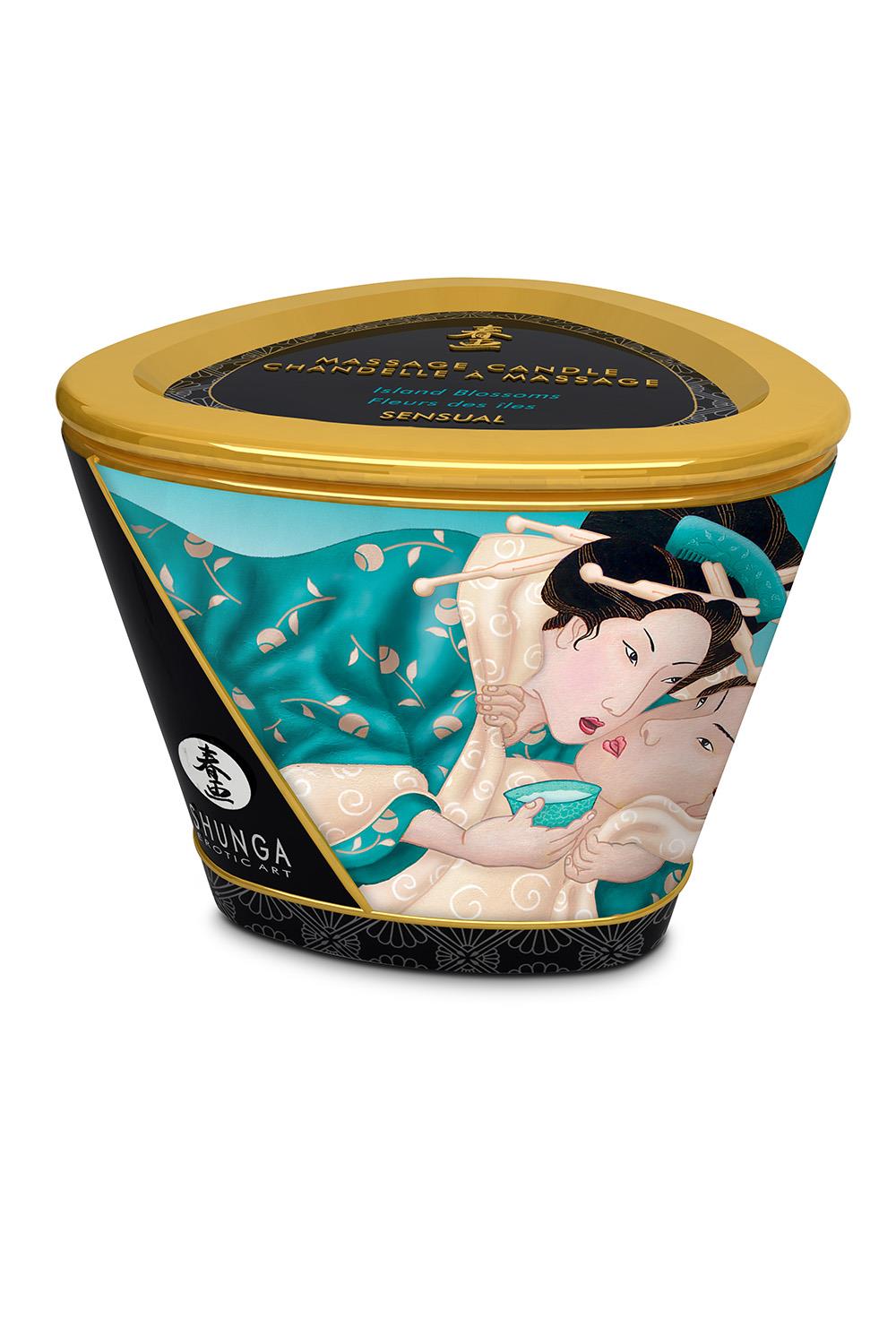 Masaż Kwiatów Wyspy Świec. Ta świeca na bazie soi może być używana zarówno jako świeca nastrojowa, jak i olejek do masażu intymnego.