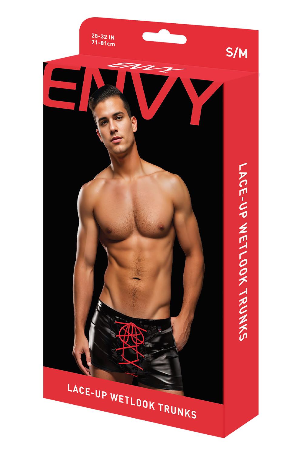 Sznurowane kąpielówki Envy Menswear Wetlook Trunks na nowo definiują współczesną bieliznę męską dzięki odważnemu i uwodzicielskiemu designowi. Te spodenki, wykonane z eleganckiej tkaniny typu wetlook, emanują urzekającym urokiem. Dodanie żywych czerwonych sznurówek z przodu nie tylko dodaje kontrastowego koloru, ale także pozwala na dostosowywanie i kuszące dopasowanie, zachęcając użytkownika do oddania się zabawie i przygodzie. Dzięki idealnemu połączeniu wyrafinowania i zmysłowości, te sznurowane kąpielówki pokazują zaangażowanie Envy Menswear w dostarczanie innowacyjnej i modnej odzieży intymnej dla współczesnego mężczyzny, który szuka w swojej garderobie zarówno stylu, jak i ekscytacji.
