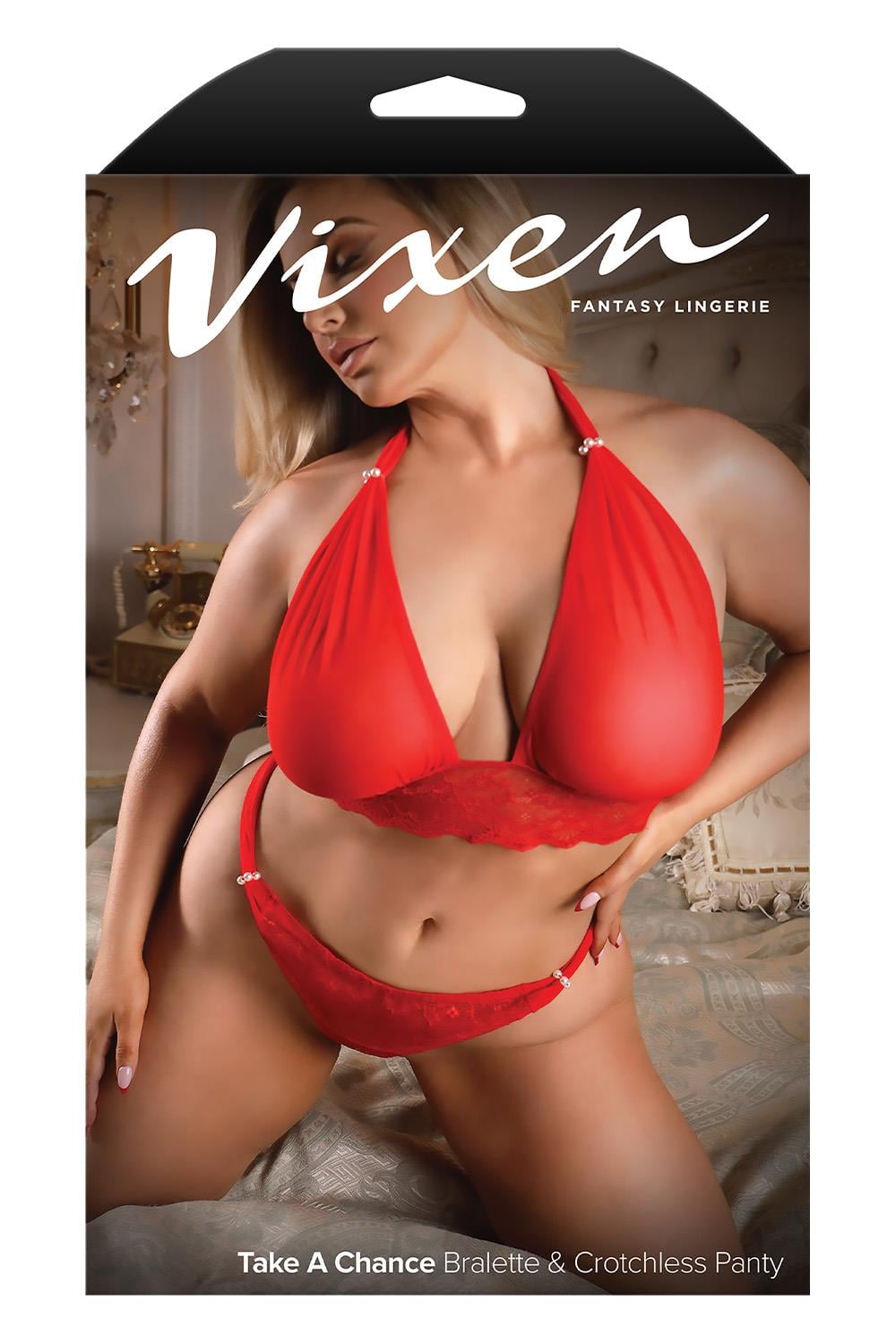 Napisz pierwszą opinię o „TAKE A CHANCE LACE AND MESH HALTER BRALETTE & PANTY RED, QS”