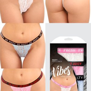 TASTY VIBES PANTY PACK 3 PAIRS OF LACE THONG PANTIES, OS
