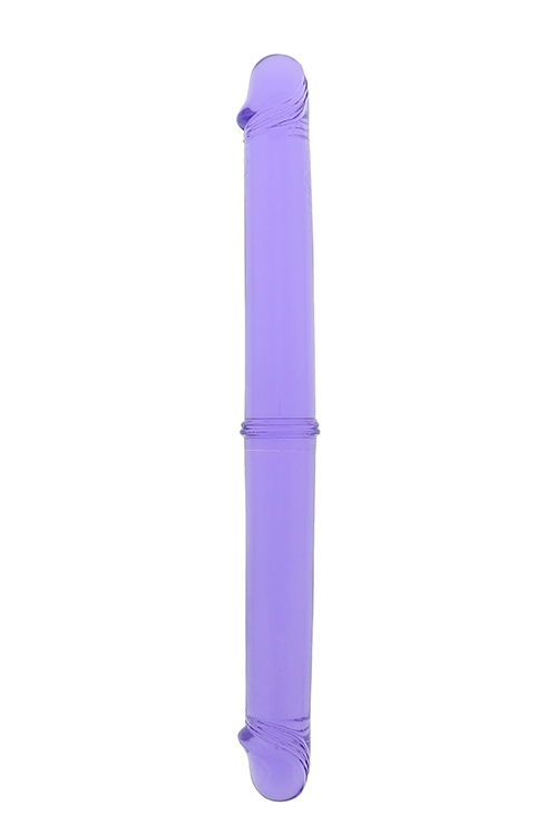 See-thru crystal clear purple looks. 12inch length and 1.25inch diameter. Soft jelly bends to fit tight angles. Penis shaped tips for real penetration. Perfect for double dates.