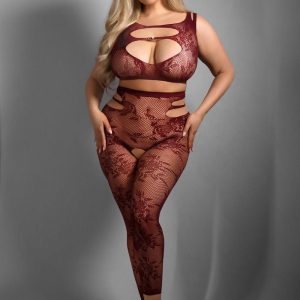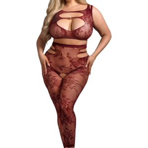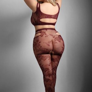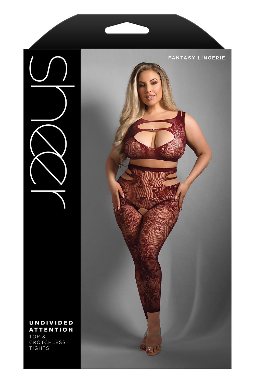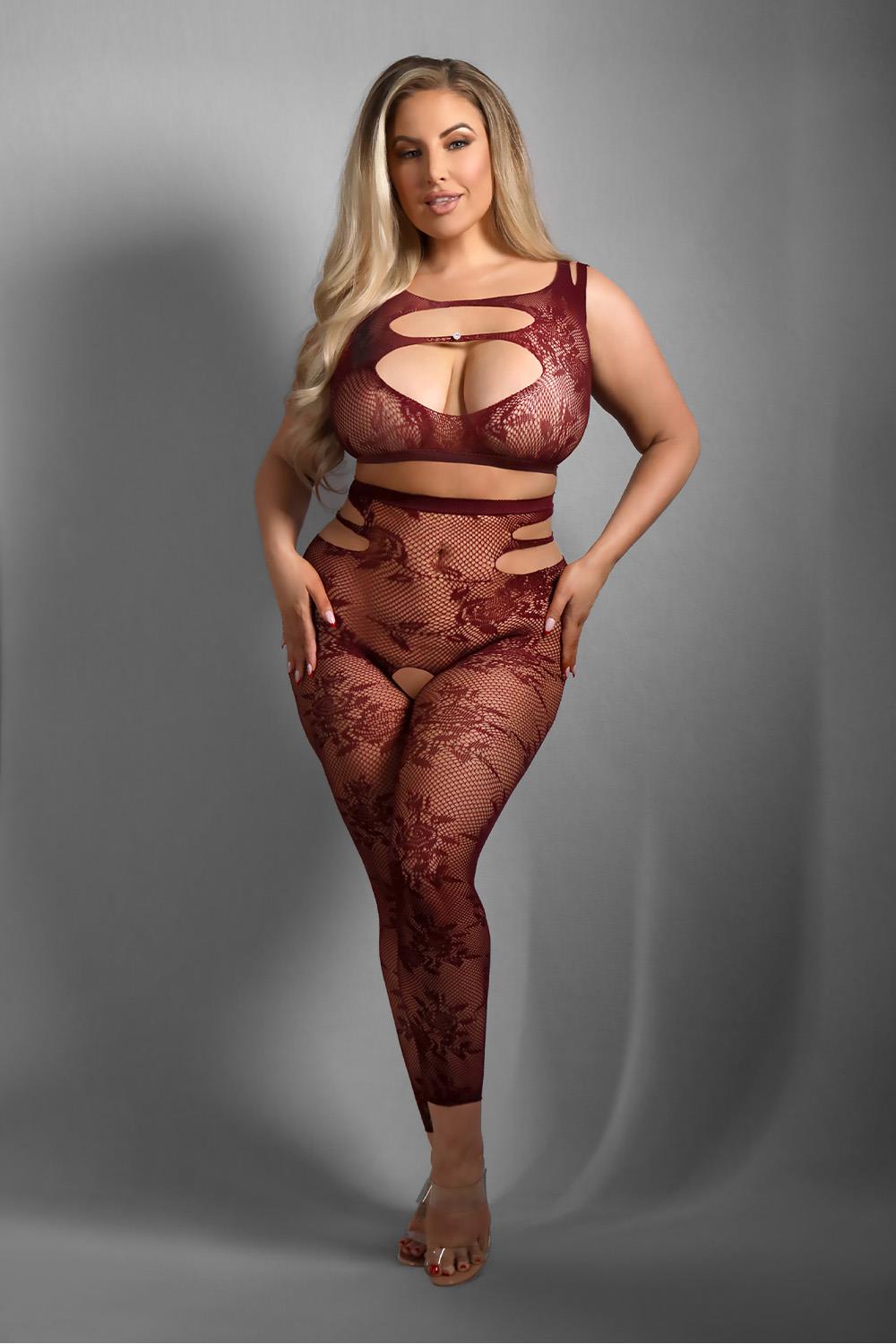 Cut-out lace net top with rhinestone accent and footless open crotch tightsFabric Content:90% Nylon, 10% SpandexDownload Size Chart Fantasy Lingerie