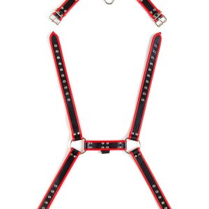 Virgite, erotic things, is a registered brand designed in Spain made with high quality materials. It is made up of different product lines that will be expanded for all types of audiences. Fully adjustable men’s chest harness made of vegan leather. It has a series of adjustable straps and buckles for optimal adjustment of the correct size. Design covered with studs and high quality materials. In the center of them, both in the front and in the back, it has an O-shaped ring that you can use to optimize grip in your fantasy games. The contrast in black and red will unleash any passion.