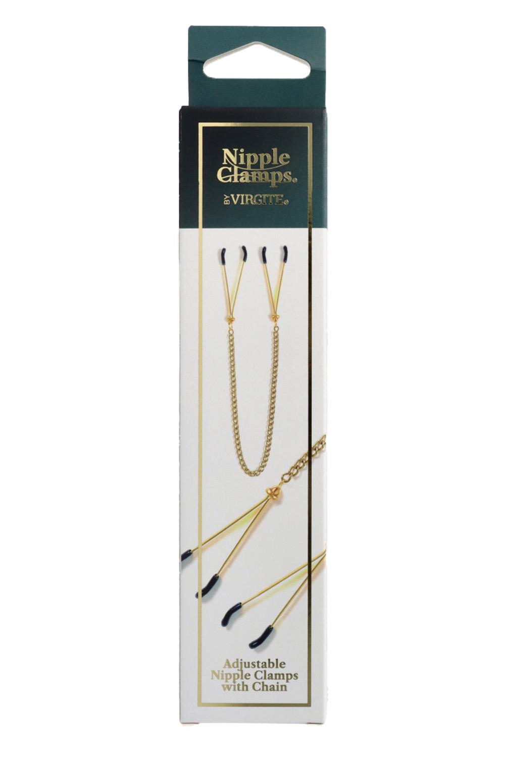 As sensual as they are dazzling, Virgite Nipple Clamps ignite passion in the nipples with a seductive and provocative pressure. The clamps get tighter by moving the ring up along the pinchers.