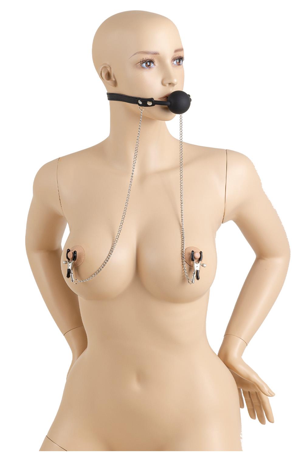 Designed to cater to your preferences, these clamps are adorned with a chain that is attached to an adjustable ball gag. Be careful, it doesn’t have breathing holes! Enjoy these sexy pinches!