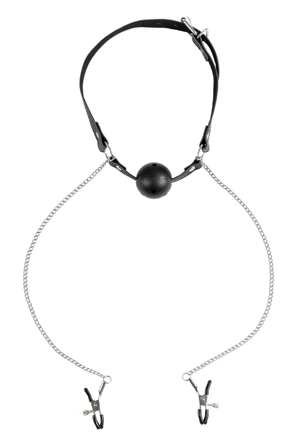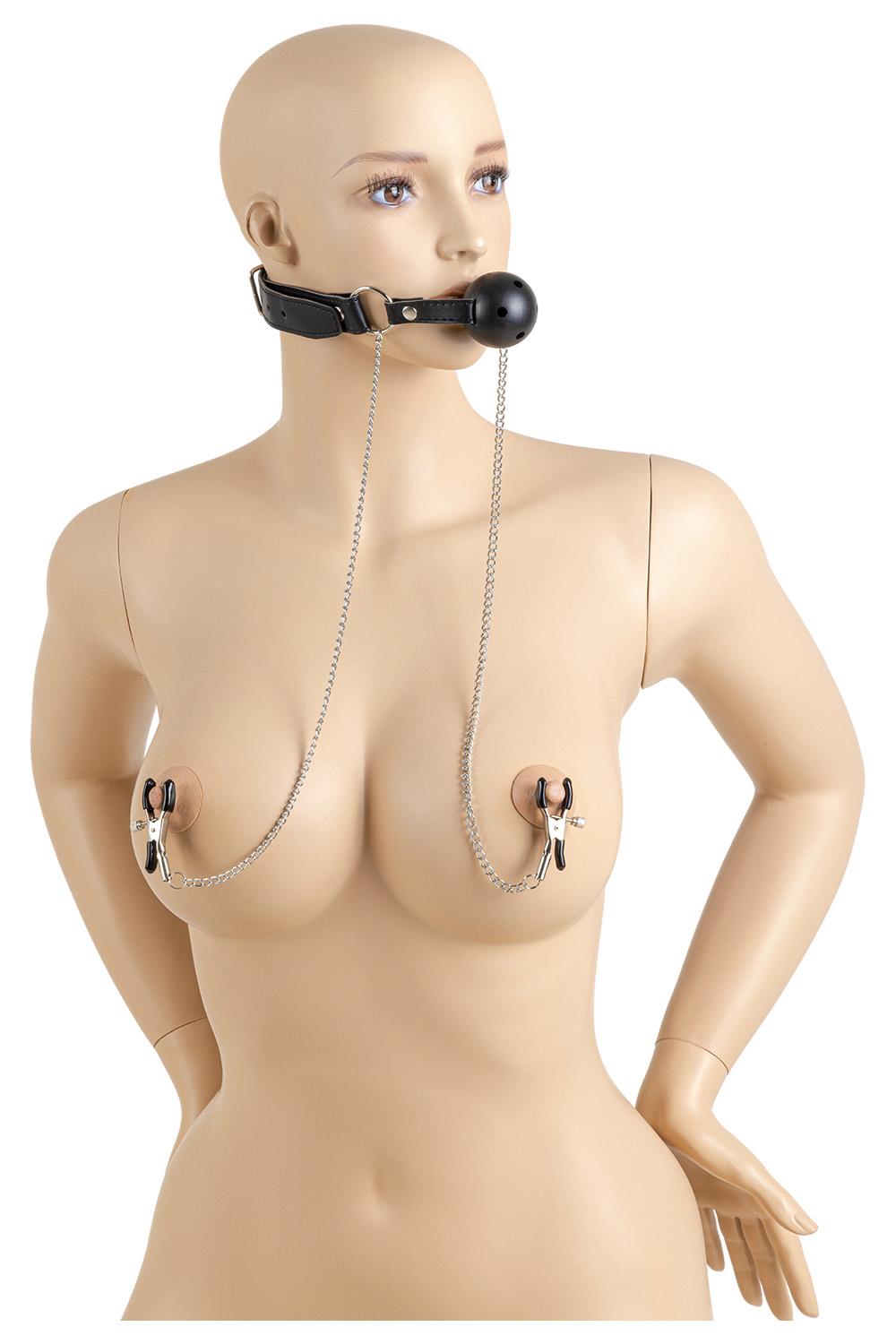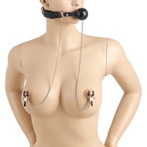 Designed to cater to your preferences, these clamps are adorned with a chain that is attached to an adjustable ball gag with breathing holes. Enjoy these sexy pinches!