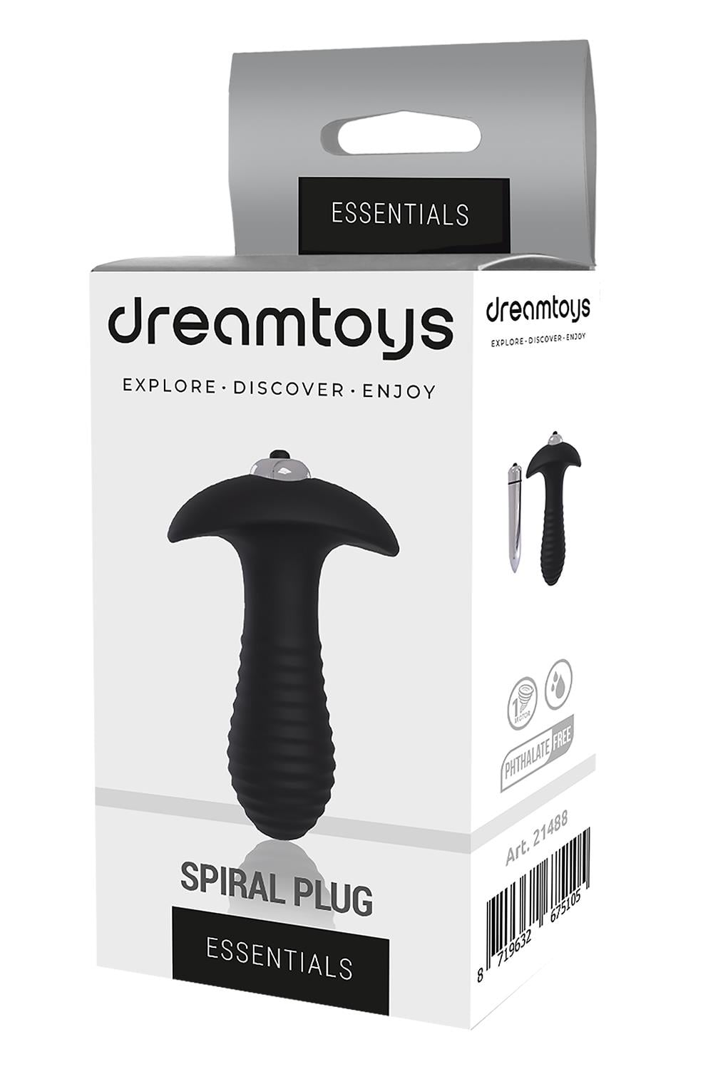 Spiral Plug to korek analny z wyjmowanym pociskiem wibracyjnym, oferujący potężne wibracje o pojedynczej prędkości. Żebrowany trzonek korka ma zwężającą się końcówkę. Podstawa wtyczki w kształcie kotwicy zwiększa poczucie bezpieczeństwa podczas korzystania z zabawki analnej. Pocisk potrzebuje baterii 1x AAA do wibracji, która jest w zestawie.