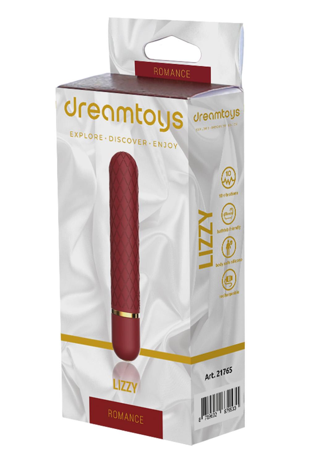 Produkty Romance mają wyraźny rubinowy kolor i luksusowy wygląd. Dzięki wysokiej jakości wykonania, jakiej można oczekiwać od luksusowych zabawek Dream Toys. Podobnie jak inne zabawki Romance, wibrator kulkowy Lizzy jest elegancki i romantyczny na zewnątrz i pełen technologii w środku. Kieszonkowy wibrator kulkowy Lizzy w kolorze bordowym ma teksturę w kształcie rombu w miękkim silikonie spożywczym sztywnego trzonka.