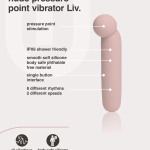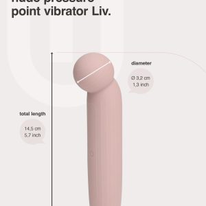 Wyrafinowana Liv może wprowadzić użytkowników w świat rozkoszy. Elastyczny wibrator punktowy w delikatnym, pudrowym różu sprawi przyjemność podczas użytkowania w pojedynkę i może być ulubieńcem pary. Dzięki wszechstronnemu kształtowi kuli u góry i elastycznej konstrukcji, Liv jest idealnym towarzyszem precyzyjnej stymulacji przy zmiennym nacisku i luksusowych masaży.
