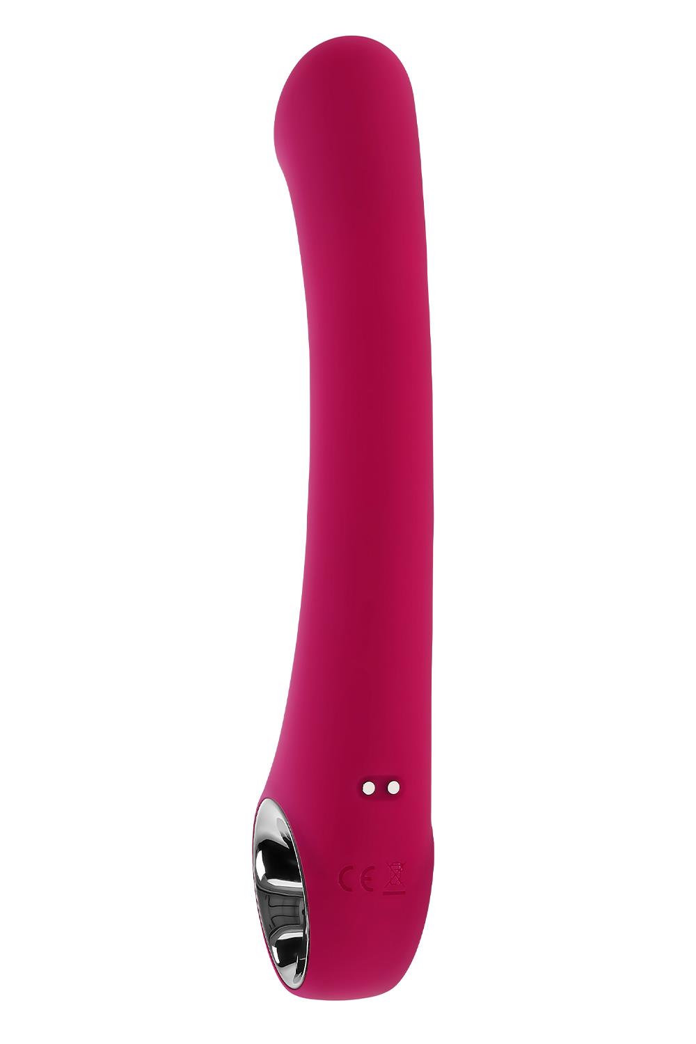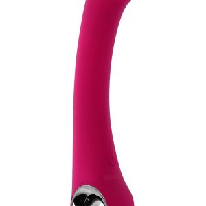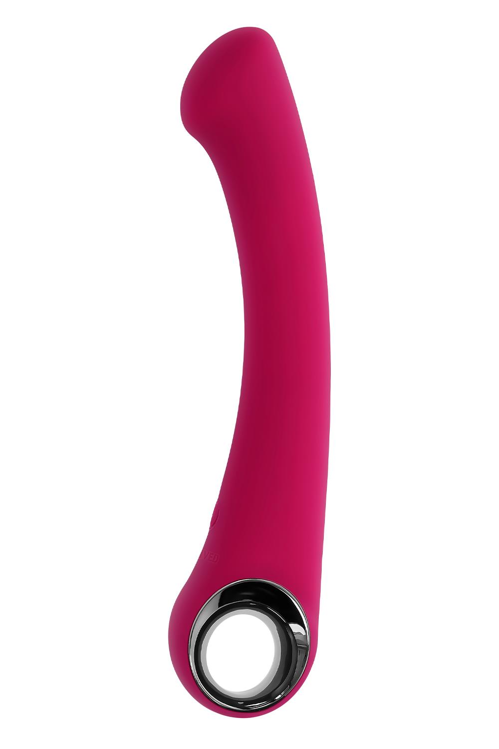 Poczuj unikalny, płaski kształt głowicy punktu G w tym wielobiegowym trybie. Delikatnie zakrzywiona, z elastyczną, smukłą cholewką, została zaprojektowana tak, aby z łatwością sięgać punktu G i poruszać się wraz z ciałem podczas gry. Stylowy, chromowany uchwyt pierścieniowy został zaprojektowany tak, aby zapewnić rozluźnienie dłoni, zapewniając czysty komfort i łatwość.