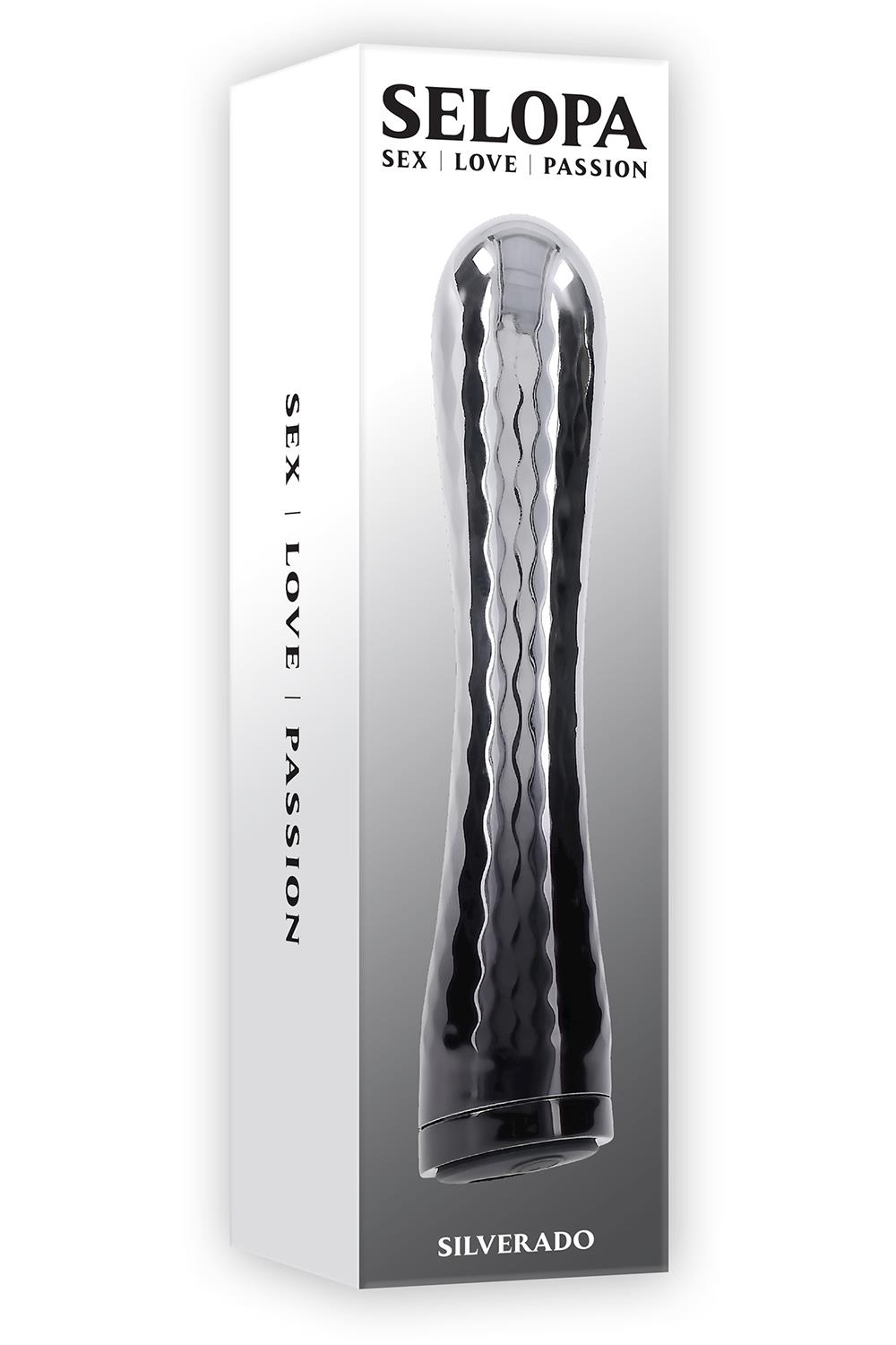 Stylowy i teksturowany dla łatwego chwytu, ten elegancki chromowany kształt zapewnia mocne wibracje w długim, smukłym trzonku zakończonym gładką, bulwiastą końcówką.
