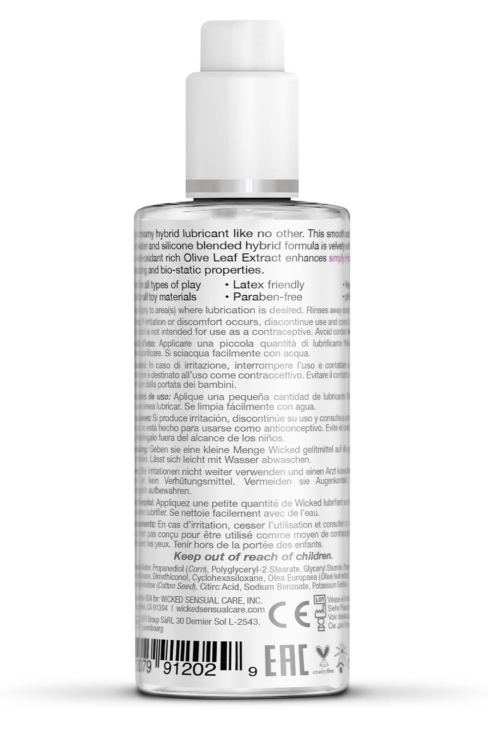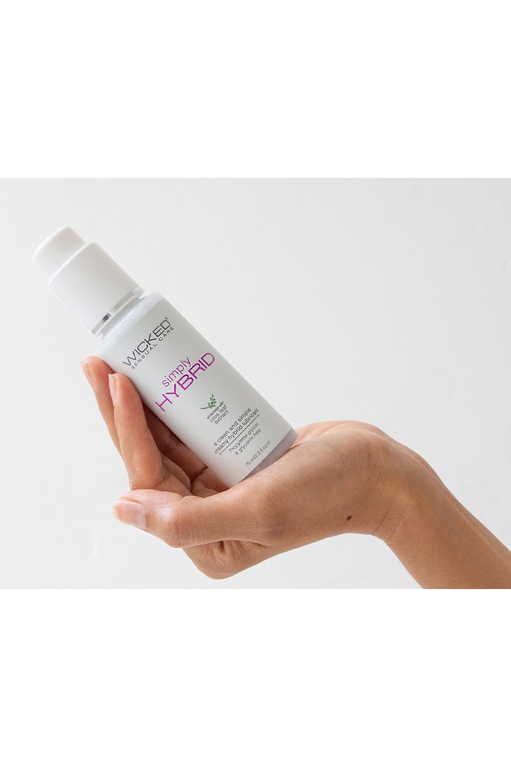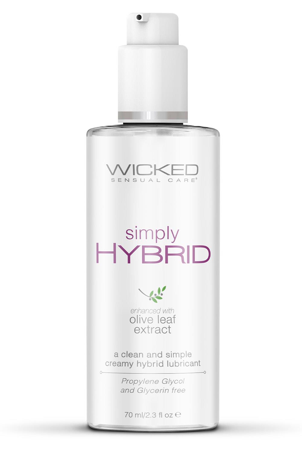 Wicked is all about providing choice in their formulas and the Simply line really complements the Wicked Sensual Care line of products, while catering to the people who are particularly picky about the ingredients of their lube. The Simply product line offers the Wicked Sensual Care quality with some new benefits.Simply lubricants are made without Glycerin, Propylene Glycol, or Parabens and are cruelty free and vegan. Like all Wicked Sensual Care formulas, they’re enhanced with Wickeds signature Olive Leaf Extract that inhibits the spread of harmful bacteria and microorganisms. When you’re ready for a clean lube, do it Simply. Simply Hybrid is a creamy hybrid. The pearly white color is a sought after color for many, great for use with ejaculating dildos and with ‘cum play’. It has a really natural feel, a very nice formula that is safe with silicone toys. Simply Hybrid is a creamy, realistic hybrid. Incredibly smooth and long lasting. Free of Glycerin, Propylene Glycol, and Parabens. Antioxidant-rich Olive Leaf Extract enhances this formula with its moisturizing and biostatic properties. Vegan, cruelty free, and PH balanced. Directions: Apply to the area(s) where lubrication is desired. Cleans away easily with water.Ingredients: Water, Propanediol (corn),Polyglyceryl-2 Stearate,Glyceryl Stearate, Stearyl Alcohol,Cyclopentasiloxane,Dimethiconol, Cyclohexasiloxane, Olea Europaea (olive) leaf extract,Hydroxyethylcellulose (tree bark), Citric Acid, Sodium Benzoate,Potassium Sorbate