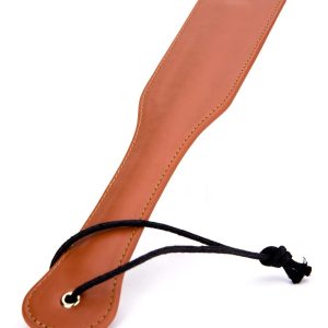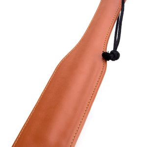 This 32 cm long spanking paddle from the Blaze Elite label is slightly flexible for soft or firm spanking. The material and colour make it a stylish and classy time. Use with care because a paddle can be used for gentle caressing but also for hard and painful spanking!Paddle made of artificial leatherLength 32 cmSlightly flexible Warm cognac-coloured BDSM gear made of artificial leather exudes a unique and alluring charm. The rich hue of cognac adds an element of sophistication and elegance, while the use of artificial leather ensures a cruelty-free and ethical alternative. This combination creates a visually striking aesthetic that can enhance the confidence and self-expression of those who choose to embrace this style. These Blaze items can be a powerful symbol of empowerment and individuality.