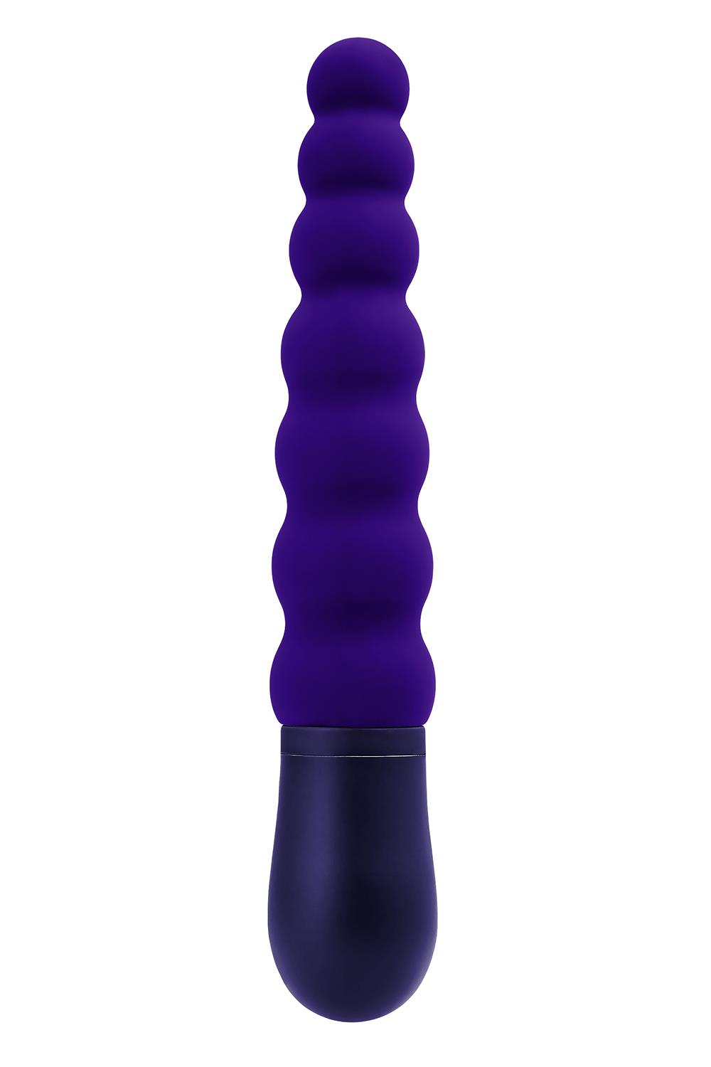 Ten lekko wygięty wibrator z koralikami ma 3 miękkie gruszki na elastycznej górze i 4 twarde, w miarę powiększania się w kierunku podstawy, zakończone sterowaniem za pomocą 1 przycisku.