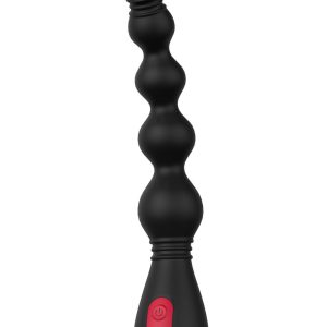 Zatyczka do koralików Anal Flexi jest bardzo elastyczna i wykonana z silikonu medycznego. Ma zwężający się kształt z 5 koralikami stopniowo zwiększającymi się w kierunku podstawy, od 21 mm u góry do 34 mm u dołu. Te kulki analne zapewniają dodatkową stymulację podczas gry wstępnej lub podczas kulminacji. Mogą być używane zarówno do zabaw waginalnych, jak i analnych. Dlatego nadają się zarówno dla mężczyzn, jak i kobiet. Kształt powoduje ekscytujące doznania podczas wkładania lub wyjmowania wtyczki. Zrób to powoli i ostrożnie, koralik po koraliku. Jak daleko sobie z tym poradzisz? Silnik na górze napędza 3 poziomy stałych wibracji i 6 różnych rytmów. Aktywację i przełączanie wibracji można wykonać za pomocą przycisków na podstawie.