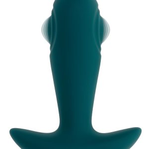Konstrukcja tej zdalnie sterowanej wtyczki z podwójnym dotknięciem obejmuje potężne owalne strefy gwintowania po obu stronach bulwiastej główki, które sprawiają, że cały kształt wibruje. Delikatnie pęczniejący trzonek zwęża się przed zakończeniem szerokim, bezpiecznym uchwytem podstawy, który umożliwia łatwą nawigację.