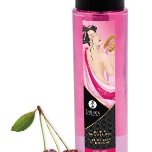 Żel do kąpieli i pod prysznic Matowa Wiśnia. Zainspirowany japońskimi rytuałami kąpieli, zmysłowy żel z aloesem i witaminą E delikatnie oczyszcza skórę i rozbudza zmysły. Pozwól, aby zrobiło się parno, oddaj się zmysłowej zabawie wodnej i okryj partnerkę pysznymi wiśniowymi pocałunkami.