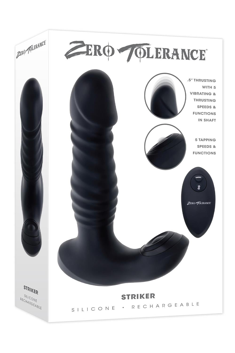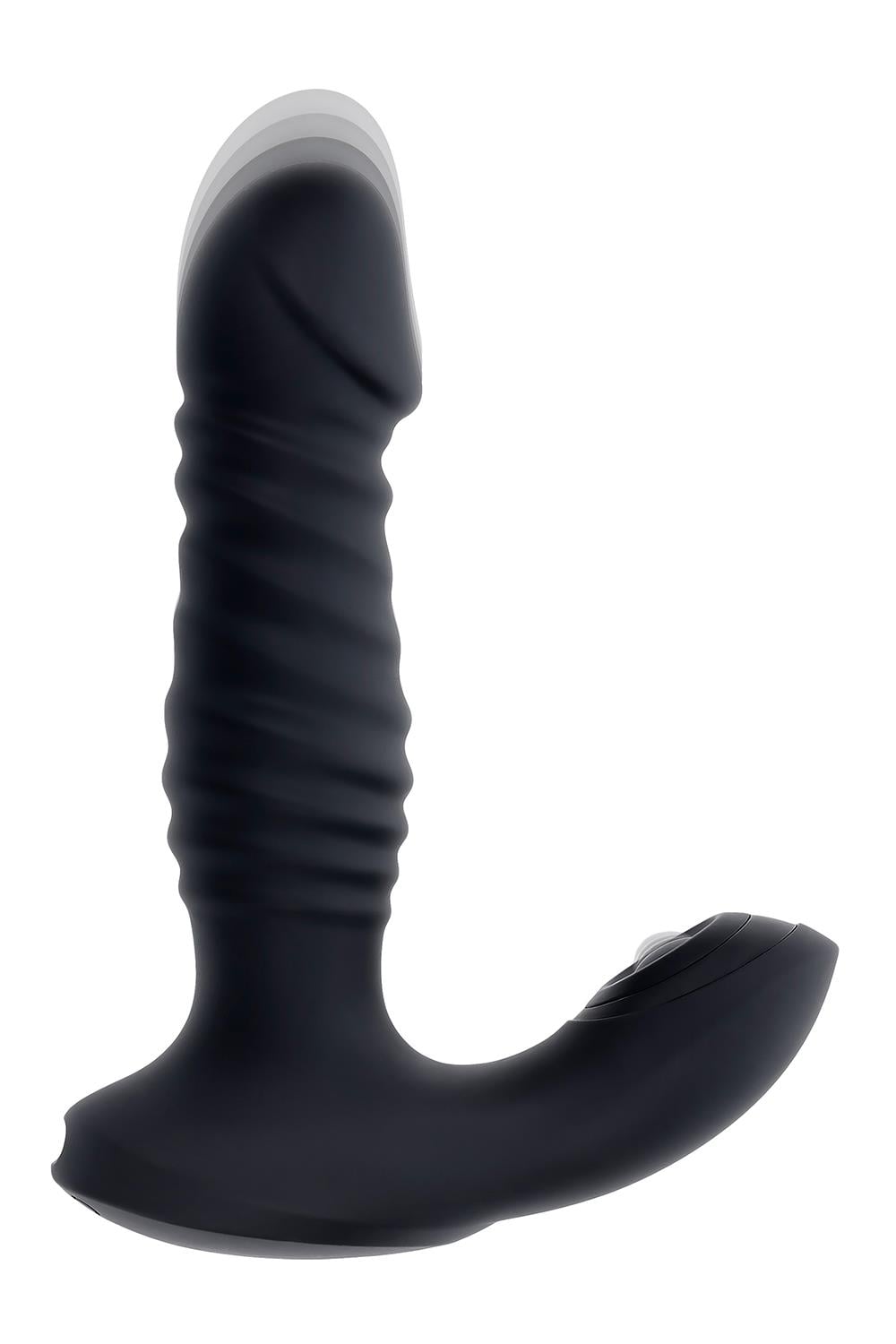 This powerful thrusting anal vibe has a phallic-shaped crown head and a ribbed shaft to create delicious internal sensations while the base is designed to simultaneously tap the perineum for a wild boost of pleasure right where you want it most. Let the remote control add fun possibilities to your playtime. 5 vibrating and thrusting speeds & patternsThrust 0.5” / 1,3 cm5 tapping speeds and functionsMade from phthalate and latex free silicone & ABSHeight: 6.44” / 16,4 cmDepth: 4.79″ / 12,2 cmWidth: 1.57″ / 4 cmInsertable length 5″ / 12,7 cmInsertable diameter 1.48″ / 3,7 cmWaterproof and submersibleUSB magnetic rechargeable, USB cable includedRechargeable remote control, range 15’ / 4,5 meters