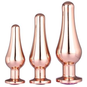 Kolekcja Gleaming Love przedstawia ten zestaw stożkowych i błyszczących zatyczek analnych z kamieniem w podstawie. Wykonane z gładkiego, lekkiego aluminium i bezszwowe, te przyjemne zabawki łatwo się przesuwają, a powiększający się rozmiar gwarantuje, że sprawią przyjemność. Rozkloszowana podstawa zapewnia poczucie bezpieczeństwa, jednocześnie utrzymując klejnot wygodnie między pośladkami. Wysadzane klejnotami korki są pięknie ozdobione delikatnym okrągłym kamieniem szlachetnym. Od czubka do podstawy, bezszwowe zatyczki analne mają lśniący połysk, który wspaniale łączy się z blaskiem pasującego klejnotu. Stożkowy, stożkowy kształt wtyczek łączy w sobie łatwość użycia z erotyczną przyjemnością seksu analnego. Zatyczki Gleaming Love można przed użyciem podgrzać lub schłodzić w wodzie, aby zapewnić dodatkowe doznania.