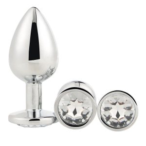 Kolekcja Gleaming Love przedstawia ten zestaw błyszczących zatyczek analnych w 3 rozmiarach, każdy z kamieniem szlachetnym. Wykonane z gładkiego, lekkiego aluminium i bezszwowe, te przyjemne zabawki łatwo się przesuwają, a rozszerzana podstawa zapewnia poczucie bezpieczeństwa, jednocześnie utrzymując klejnot wygodnie między pośladkami. Wysadzane klejnotami korki są pięknie ozdobione delikatnym okrągłym kamieniem szlachetnym. Od czubka do podstawy, bezszwowe zatyczki analne mają lśniący połysk, który wspaniale łączy się z blaskiem pasującego klejnotu. Zwężany kształt bulw wtyczek łączy w sobie łatwość użycia z erotyczną przyjemnością. Zatyczki Gleaming Love można przed użyciem podgrzać lub schłodzić w wodzie, aby zapewnić dodatkowe doznania. W zestawie torba do przechowywania wykonana z miękkiej aksamitnej tkaniny, która zapinana jest na sznurek. Duża wtyczka: