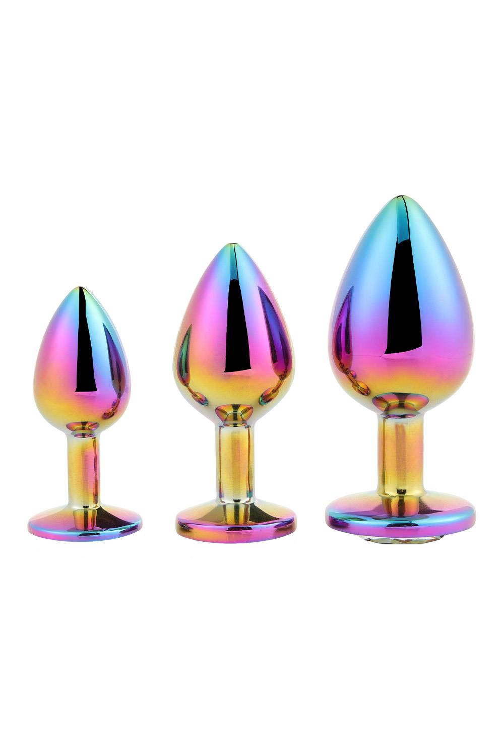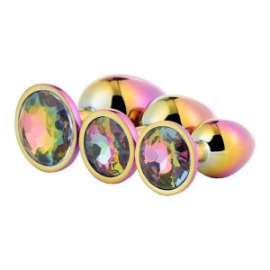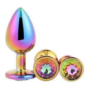 Kolekcja Gleaming Love przedstawia ten zestaw błyszczących zatyczek analnych w 3 rozmiarach, każdy z kamieniem szlachetnym. Wykonane z gładkiego, lekkiego aluminium i bezszwowe, te przyjemne zabawki łatwo się przesuwają, a rozszerzana podstawa zapewnia poczucie bezpieczeństwa, jednocześnie utrzymując klejnot wygodnie między pośladkami. Wysadzane klejnotami korki są pięknie ozdobione delikatnym okrągłym kamieniem szlachetnym. Od czubka do podstawy, bezszwowe zatyczki analne mają lśniący połysk, który wspaniale łączy się z blaskiem pasującego klejnotu. Zwężany kształt bulw wtyczek łączy w sobie łatwość użycia z erotyczną przyjemnością. Zatyczki Gleaming Love można przed użyciem podgrzać lub schłodzić w wodzie, aby zapewnić dodatkowe doznania. W zestawie torba do przechowywania wykonana z miękkiej aksamitnej tkaniny, która zapinana jest na sznurek. Duża wtyczka:
