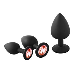 Ten zestaw zawiera 3 korki analne w 3 rozmiarach. Każda zatyczka jest wykonana z miękkiego w dotyku silikonu i ma lśniący czerwony klejnot w podstawie. Zestaw o różnych rozmiarach jest idealny dla tych, którzy chcą zmieniać rozmiary używanych przez siebie wtyczek oraz dla tych, którzy chcą trenować od małych do dużych. Ciesz się analną przyjemnością o uwodzicielskim spojrzeniu!