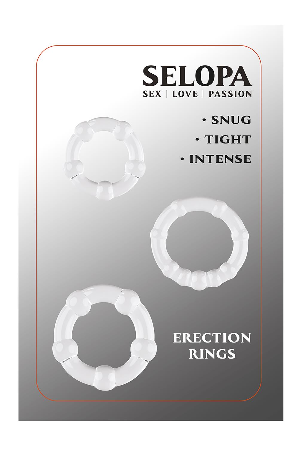 Wzmocnij swoją erekcję dzięki tej kolekcji z 3 pierścieniami, która oferuje 3 poziomy wsparcia – przytulne, ciasne i intensywne. Używaj jednego bardzo rozciągliwego pierścienia na raz lub wszystkich 3 na raz, aby cieszyć się twardszym i mocniejszym doświadczeniem.